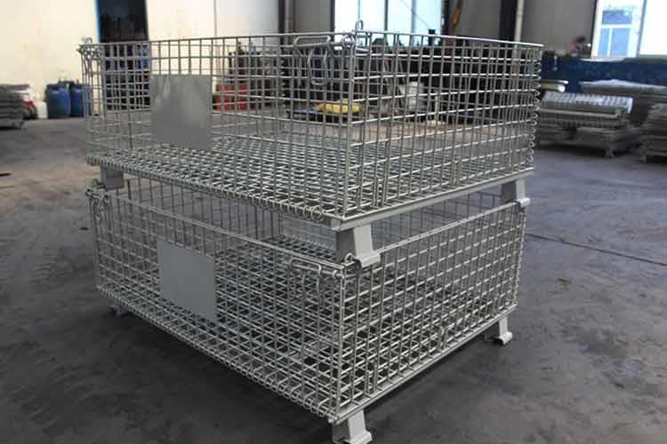 仓库储存笼主要原材料是高线拉成的钢丝,一般丝径是5mm,6mm,6.4mm。网片焊接的网目间距一般为50×100,100×100,50×50。仓储笼底部采用U型钢焊接而成,U型钢是冷轧带钢轧机轧制而成,底部四角采用冲压件一次冲制而成。铁丝笼采用Q195高线作为原材料,经冷拔成型材。再通过碰焊形成半成品网片。在制作成网片后,可采用镀锌或喷塑进行表面处理(铁丝笼大多数采用镀锌处理),表面处理完毕后就可以进行组装,即可制作成成品。